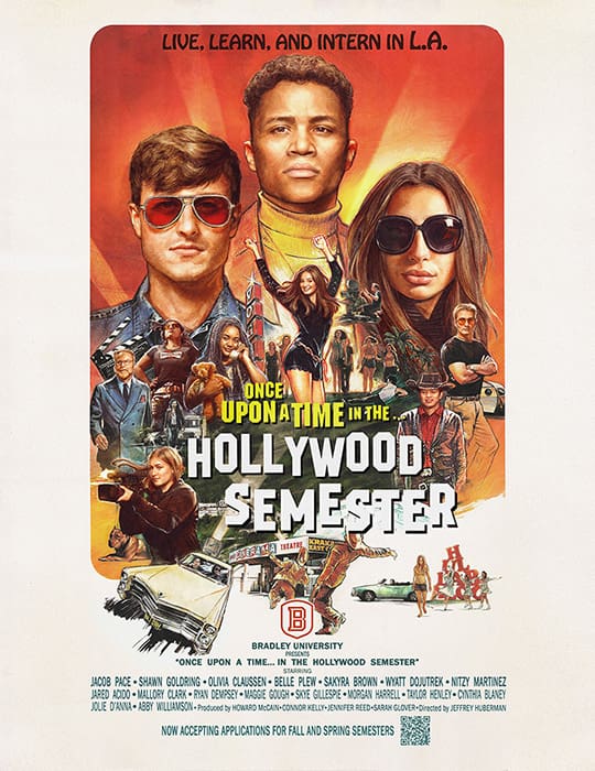 The Bradley University Hollywood Semester offers a unique opportunity for Bradley students to spend a semester in Los Angeles, living in the heart of the entertainment industry, studying specialized entertainment courses taught by industry professionals and interning across various sectors of the entertainment industry. The program aims to provide students with firsthand experience and networking opportunities in Hollywood, through internships, courses, and guest lectures. Participants gain valuable skills and connections crucial for careers in film, television, public relations, social media, and more. Additionally, the Hollywood Semester includes expeditions to industry events, ensuring an immersive experience in Los Angeles. Alumni emerge with a practical understanding of the industry, strong networking abilities, and professional presentation skills. The program now offers a mentorship initiative connecting students with Bradley alumni in Los Angeles. Open to all Bradley students & majors, the Hollywood Semester provides 12 academic credits and accepts financial aid, empowering students across majors to kickstart their careers in entertainment.