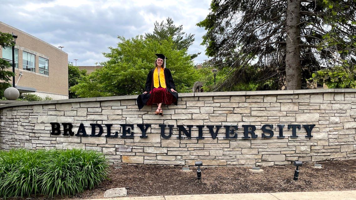 Riggenbach double majored in English and psychology at Bradley, hoping to land in the nonprofit sector after graduation. She ended up working at the Abraham Lincoln Presidential Library and Museum in their Research Division as an oral historian.
