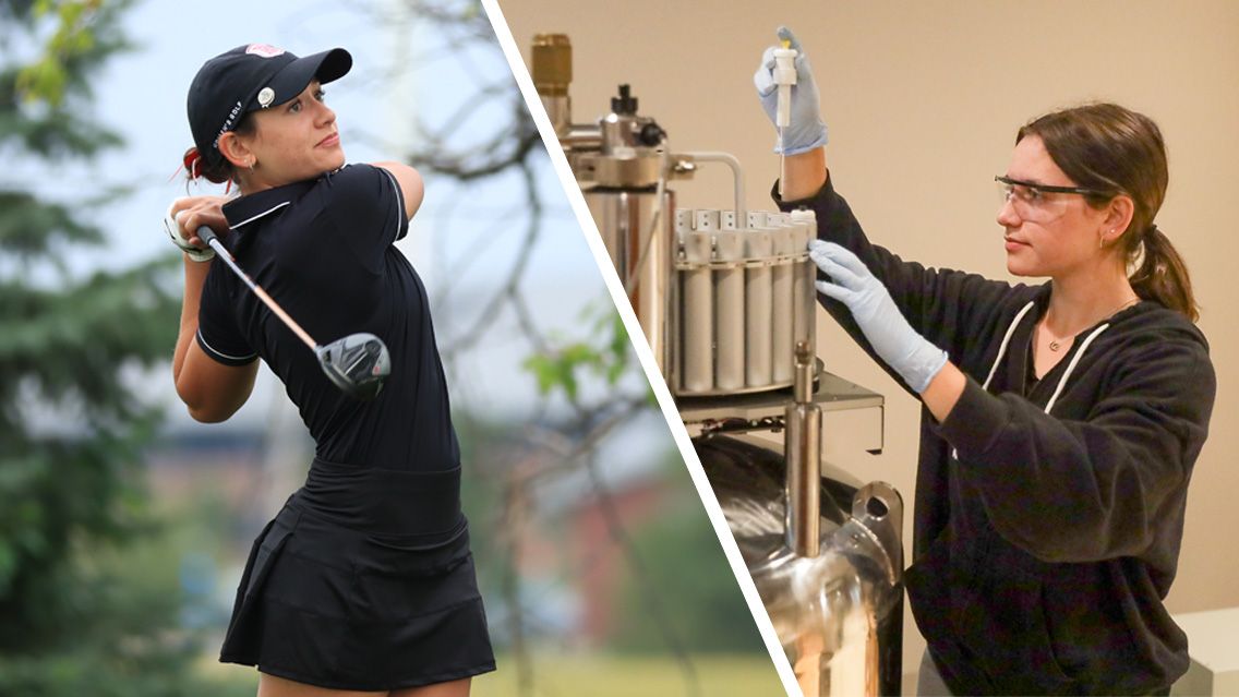 You wouldn’t think there were any similarities between playing golf and conducting research in a biochemistry lab, but you’d be wrong. Both require a great deal of patience, focus and detail, and if one thing is out of whack, it compromises the end result. These similarities aren’t lost on junior Maria Perakis, who’s a member of Bradley’s women’s golf team and studies biochemistry.