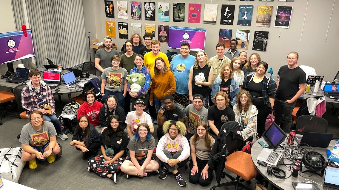 Each fall for the past seven years, Bradley students have participated in the 24-Hour Animation Challenge, which pits teams of five from more than 100 schools from around the world against each other. This year, 431 teams competed to produce a 30-second animated film about their love of animation.