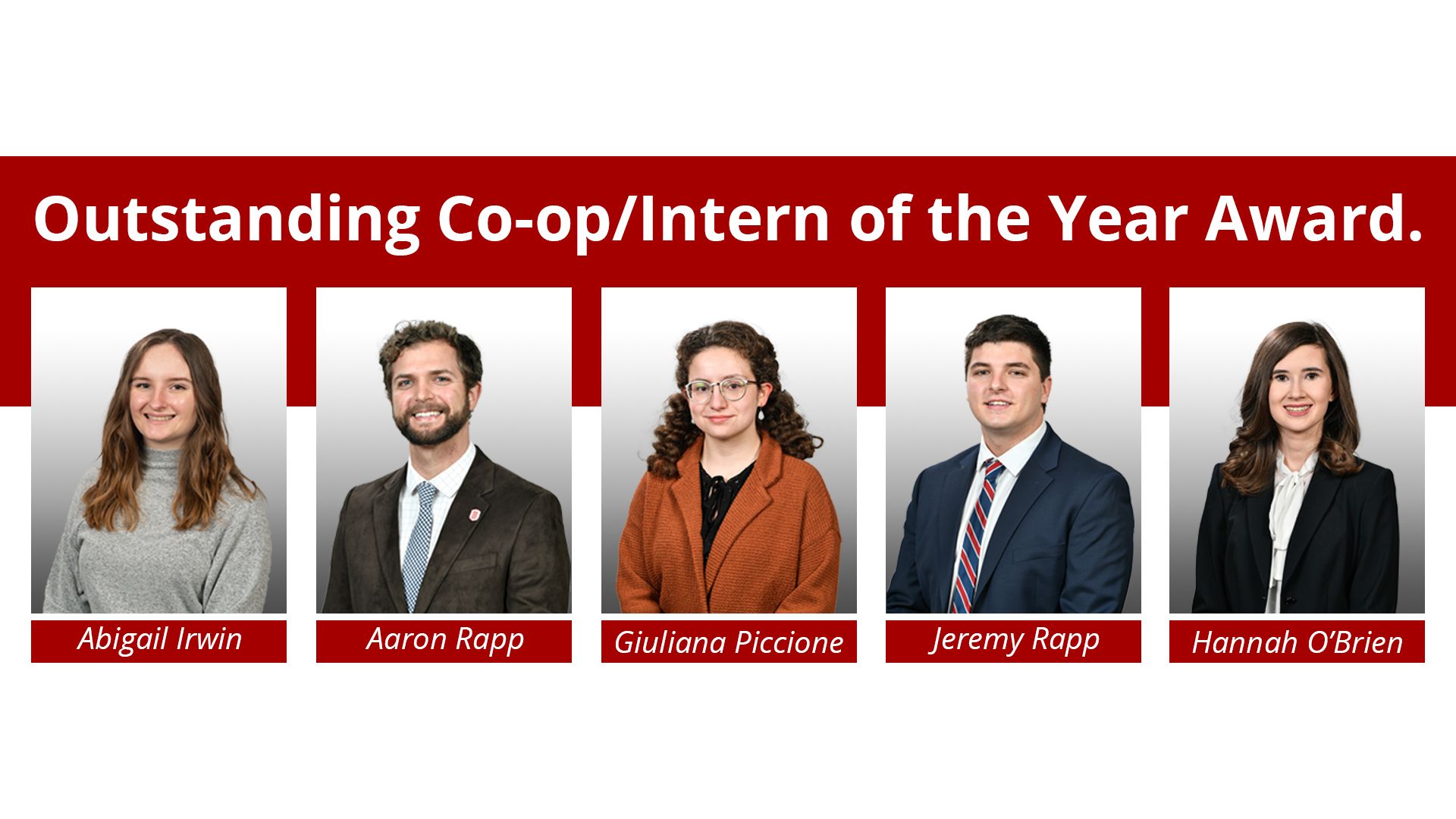 Bradley University’s Smith Career Center is pleased to announce the winners of the 2020 Outstanding Co-op/Intern of the Year Award. Please help us congratulate the following students, representing all five colleges of the University (pictured left to right).
